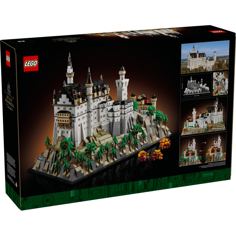 LEGO® Architecture Schloss Neuschwanstein (21063) ist ein 3.455-teiliges Bauset, das dich deine Begeisterung für berühmte Baudenkmäler ausleben lässt. Genieße deine Auszeit und erschaffe ein tolles Ausstellungsstück. Das Set ist ein grandioses Geschenk für alle, die sich für Architektur und Geschichte begeistern. Das Modell strotzt nur so vor Überraschungen wie den äußeren Turmspitzen, Mauertürmen, dem Innenhof, den Treppen und den Giebeldächern sowie kleinen Modellen im Inneren. Man kann die Blätter an den Bäumen vor dem Schloss austauschen, um eine Sommer- oder Herbstlandschaft darzustellen. Das Bauen dieses detailgetreuen LEGO Schlosses erfüllt dich mit großer Gelassenheit.