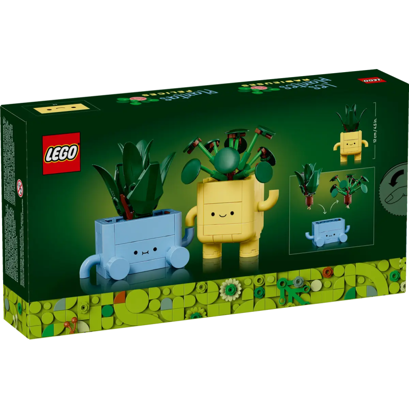 Das verspielte Set beinhaltet eine kleine Bogenhanf-Pflanze sowie eine kleine Ufopflanze. Ein gelber und ein hellblauer Blumentopf sind mit fröhlichen Cartoon-Gesichtern verziert. Kinder können selbst entscheiden, welcher Topf besser zur jeweiligen Pflanze passt. Nachdem junge Floristinnen und Floristen die Modelle zusammengefügt haben, können sie die beiden Pflanzen separat oder nebeneinander im Kinderzimmer ausstellen – egal, ob im Regal, auf dem Nachttisch oder dem Schreibtisch, die fröhlichen LEGO Pflanzen sind überall ein echter Hingucker!