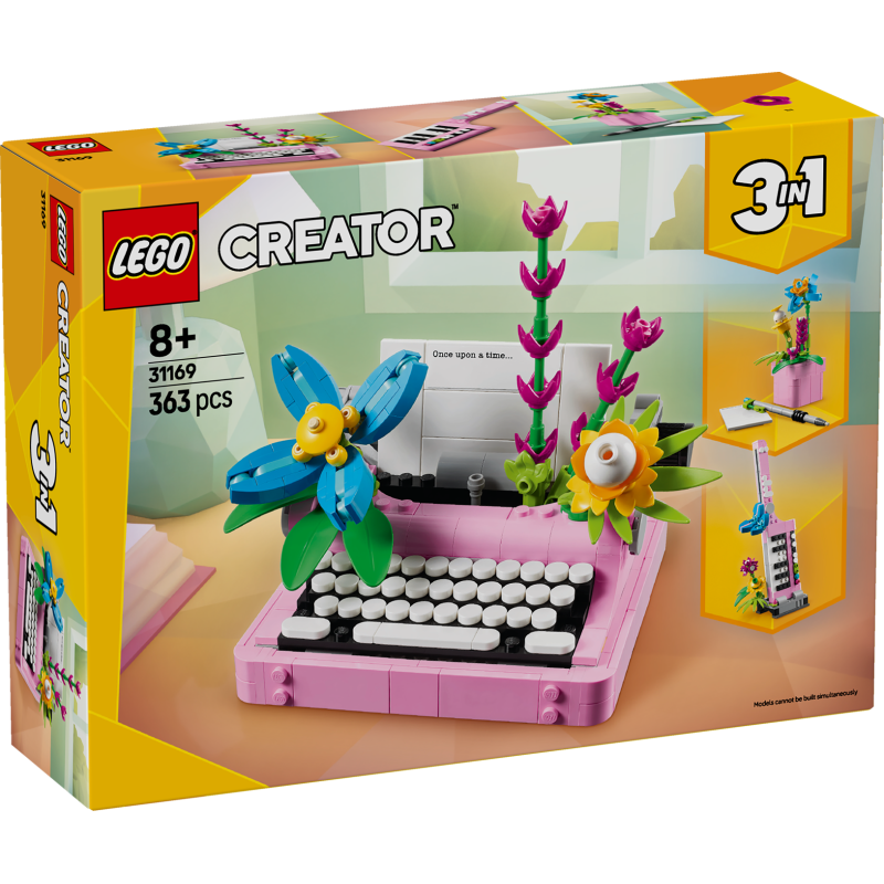 - 3 LEGO® Blumenmodelle in 1 Box: Die Creator Schreibmaschine mit Blumen aus diesem 3-in-1-Spielset lässt Kinder ab 8 Jahren 3 verschiedene Modelle aus denselben LEGO Steinen bauen und immer wieder umgestalten