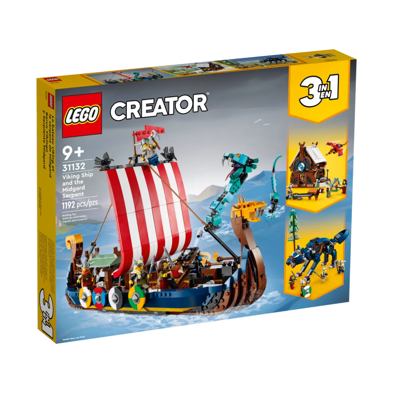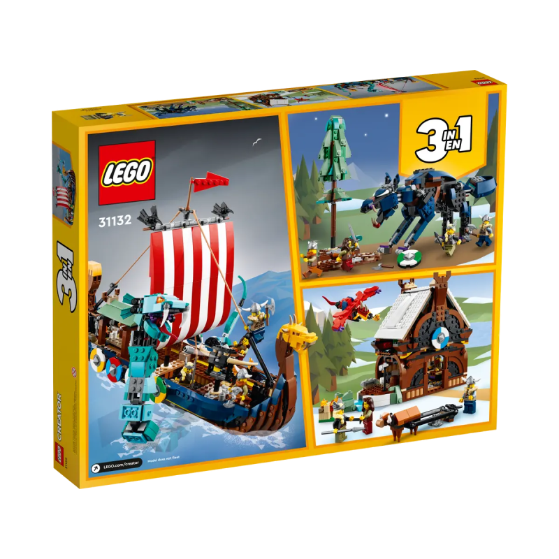 - 3-in-1-Wikingerspielset: Kinder werden das LEGO® Creator 3-in-1-Set „Wikingerschiff mit Midgardschlange“ (31132) lieben, denn es lässt sie ein Wikingerschiff, ein Wikingerhaus und einen Fenriswolf bauen