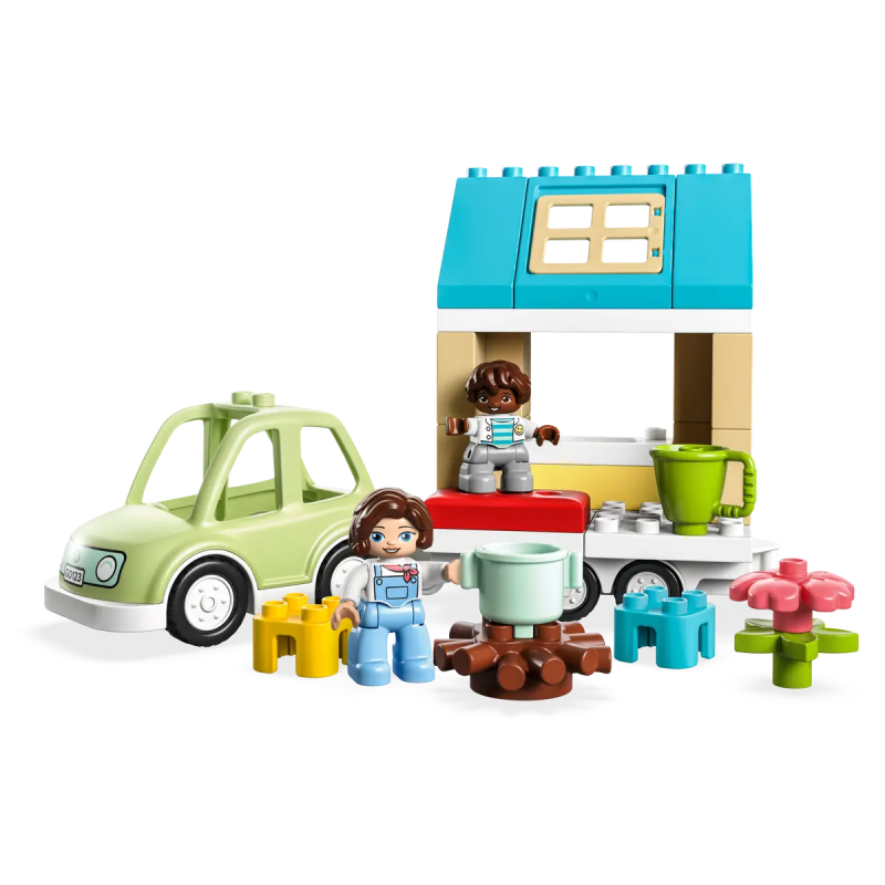 LEGO® DUPLO® Town – Zuhause auf Rädern (10986) lässt dein abenteuerlustiges Kleinkind zu spannenden Ausflügen aufbrechen. Hilf deinem Kind, den putzigen Wohnwagen zu bauen und ans Auto anzuhängen. Dann können Vorschulkinder ab 2 Jahren zu jedem Traumziel aufbrechen. Wer weiß, welchen unbekannten und interessanten Menschen sie unterwegs begegnen werden?