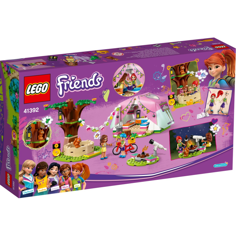 Das Lego Friends Spielset Camping in Heartlake City weckt die Begeisterung der Kinder für die freie Natur. Es gibt jede Menge Elemente, die den Kindern stundenlanges Spielvergnügen bereiten. Sie könnten sich zum Beispiel ausmalen, wie sie mit den Lego Friends Spielfiguren Olivia und Mia durch den Wald radeln. Die Kinder können aber auch mit dem Spielzeug-Eichhörnchen spielen oder so tun, als würden sie den Sternenhimmel durchs Teleskop beobachten. Camping mit allem Komfort Dieses detailreiche Camping-Spielzeug mit Luxus-Zelt vermittelt kein entbehrungsreiches Naturerlebnis. In dem Lego Zelt gibt es Betten und sogar ein Smartphone, um Bilder nach Heartlake City schicken zu können. Kinder lieben es, das Zelt mit dem weichen Plastikdach für die Spielfiguren aufzustellen und den Zeltplatz dann mit einer Lichterkette zu schmücken. Sobald der Spielzeug-Zeltplatz aufgebaut ist, können sie im Whirlpool relaxen. Luxus-Bauanleitung Doch nicht nur das Camping- und Naturerlebnis mit diesem Set lässt keine Wünsche offen, auch die Bauanleitung ist absolut erstklassig. Nach dem Herunterladen der Lego Life App haben die Kinder Zugriff auf Instructions Plus, um eine digitale Ansicht ihres Spielzeug-Zeltlagers vergrössern, drehen und näher betrachten zu können. So wird im digitalen Zeitalter gebaut. Dieses detailreiche Lego Friends Camping-Spielzeug für Naturfreunde lässt Kinder ihre Liebe zur Natur entdecken. Stundenlanger Spielspass ist den Kindern garantiert, wenn sie so tun, als würden sie das Zeltlager aufschlagen, die Natur erkunden und mit ihren Freunden relaxen.