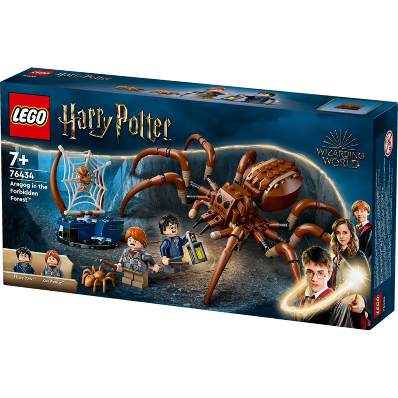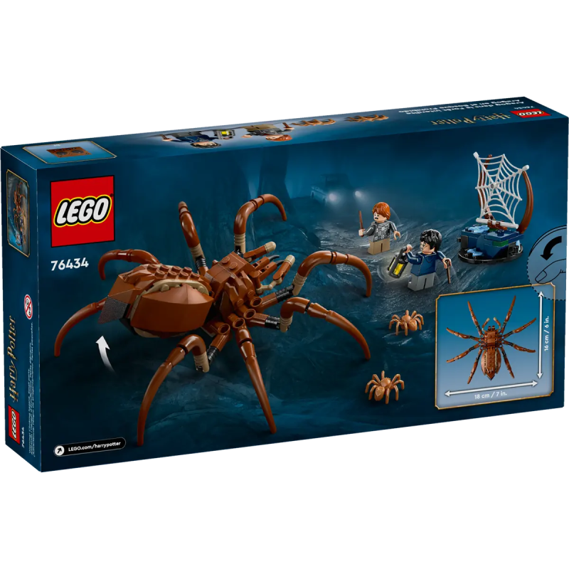 LEGO® Harry Potter™ Aragog im Verbotenen Wald™ (76434) beinhaltet die Figur einer monströsen Spinne, damit junge Zauberer, Hexen oder Muggel magische Abenteuer darstellen können. Das Spielset ist ein zauberhaftes Geschenk für Jungen, Mädchen und alle Harry Potter Fans ab 7 Jahren. Der bisher größte und authentischste Aragog aus LEGO Steinen hat bewegliche Beine, Giftklauen und Pedipalpen. Auch die Minifiguren Harry Potter und Ron Weasley™ (beide wahlweise mit fröhlichem oder ängstlichem Gesicht) mit ihren Zauberstäben und einer Laterne laden zum Spielen ein.