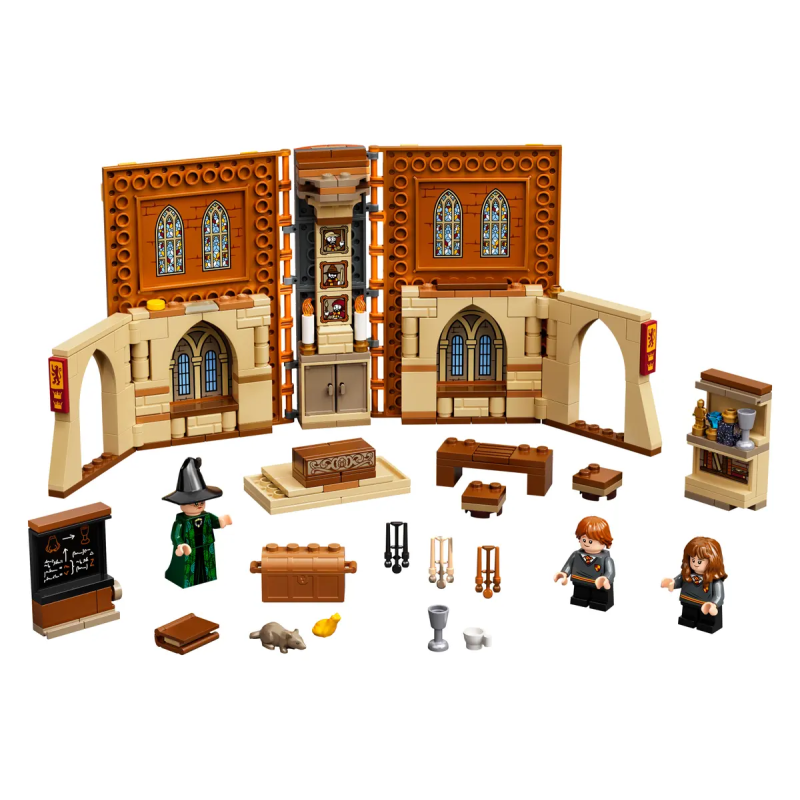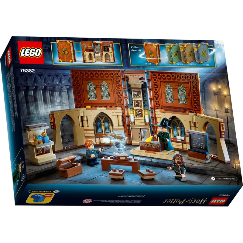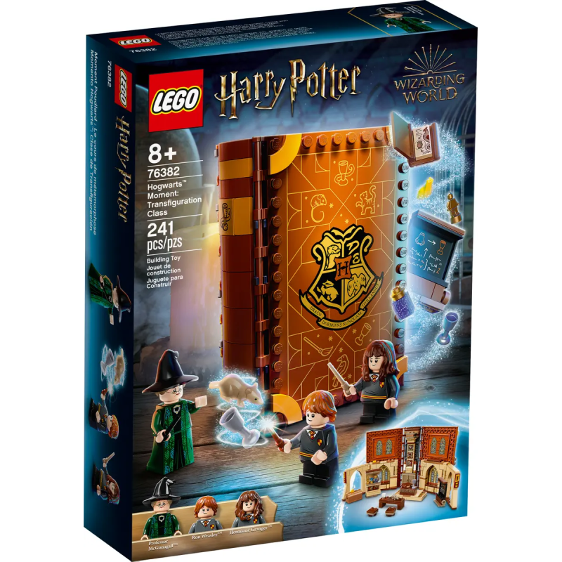 - LEGO® Harry Potter™ Hogwarts™ Moment: Verwandlungsunterricht (76382) ist ein Bauset aus LEGO Steinen in Buchform, das beim Aufklappen das Klassenzimmer für den Verwandlungsunterricht auf Schloss Hogwarts™ preisgibt.