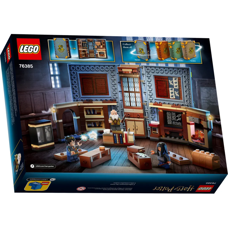 - LEGO® Harry Potter™ Hogwarts™ Moment: Zauberkunstunterricht (76385) ist ein Bauset aus LEGO Steinen in Buchform, das beim Aufklappen das Klassenzimmer für Professor Flitwicks Zauberkunstunterricht auf Schloss Hogwarts™ preisgibt.