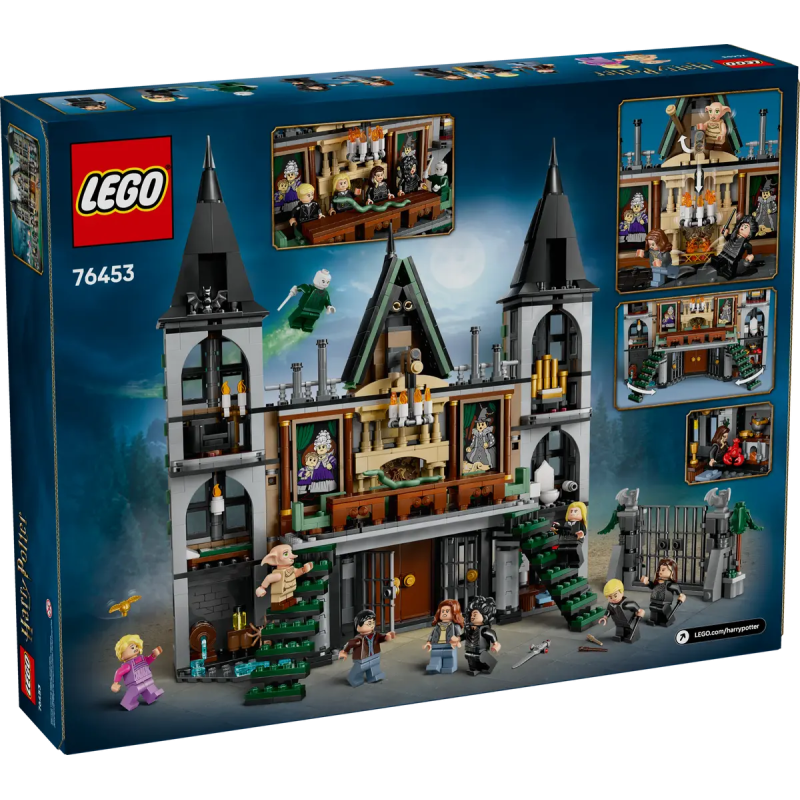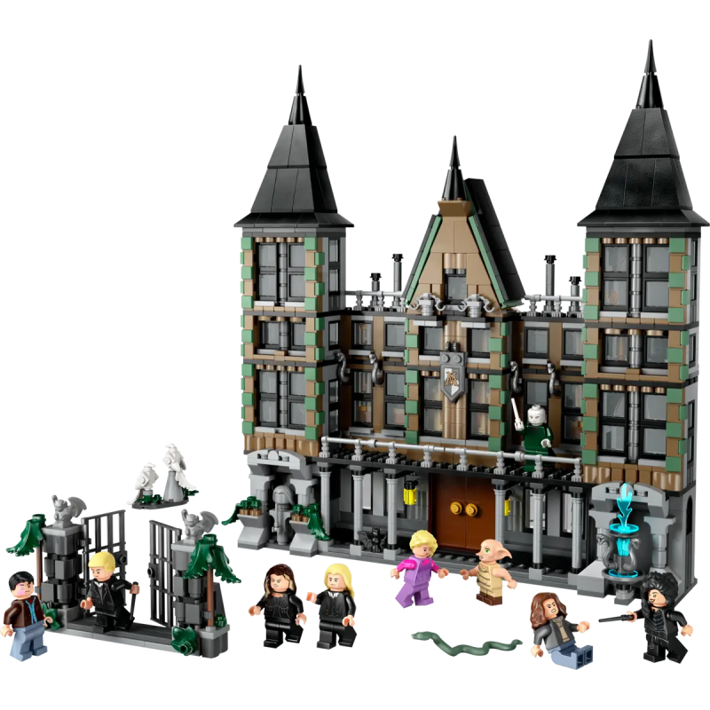 - Draco Malfoys Haus: Junge Baumeisterinnen und Baumeister können das Eingangstor, das Haus mit seiner aufwendigen Architektur, das Gesellschaftszimmer, Dracos Schlafzimmer, den Keller, die Küche und das Badezimmer mit LEGO Steinen nachbilden
