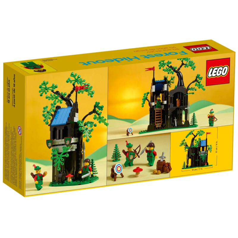 Das “Versteck im Wald” bringt die Forestmen zurück, die damals auch unter dem Namen Robin Hood vermarktet wurden. Das 40567 Versteck im Wald basiert auf dem alten Set mit der Setnummer 6054, das im Jahr 1988 unter dem Namen “Forestmen’s Hideout” in den Handel kam und sich zu einem echten Klassiker entwickelt hat. Viele Details aus dem Originalset greift das Set 40567 nun wieder auf: Die Zielscheibe, die beiden Schilde, das blaue Dach, das Fass mit den Goldmünzen und vieles mehr.