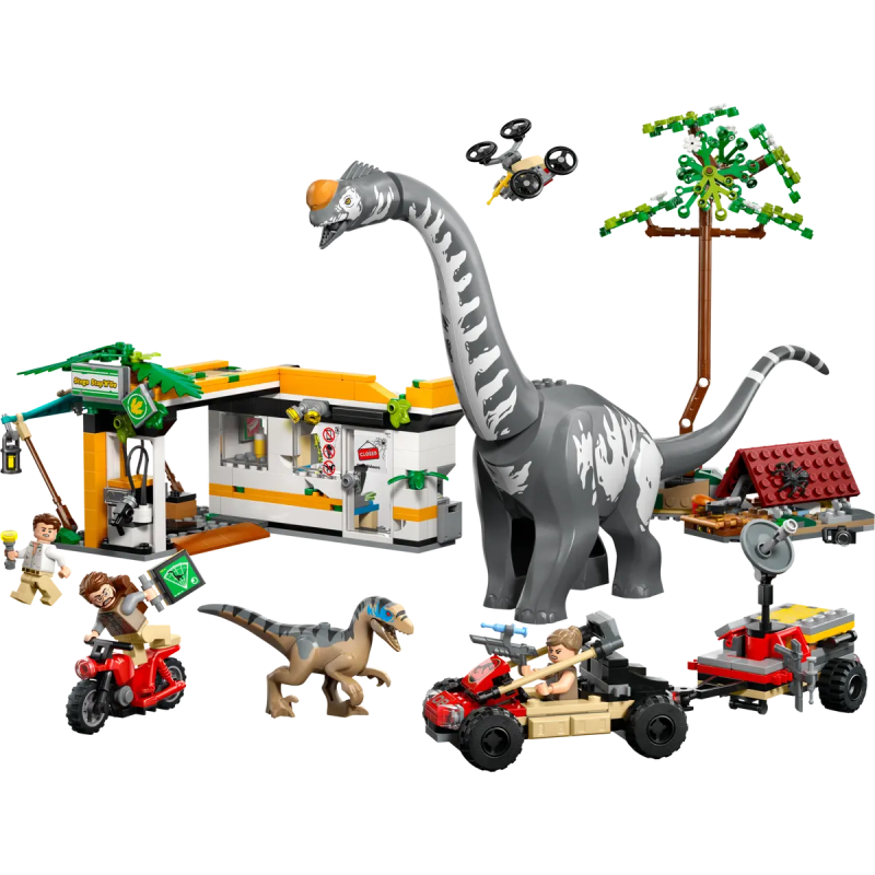- Spielzeugdinosaurier: Für viele Rollenspiele und Abenteuer beinhaltet das Set 2 gegossene Spielzeugdinos – einen Titanosaurus und einen Velociraptor – sowie 3 Minifiguren aus Jurassic World Rebirth