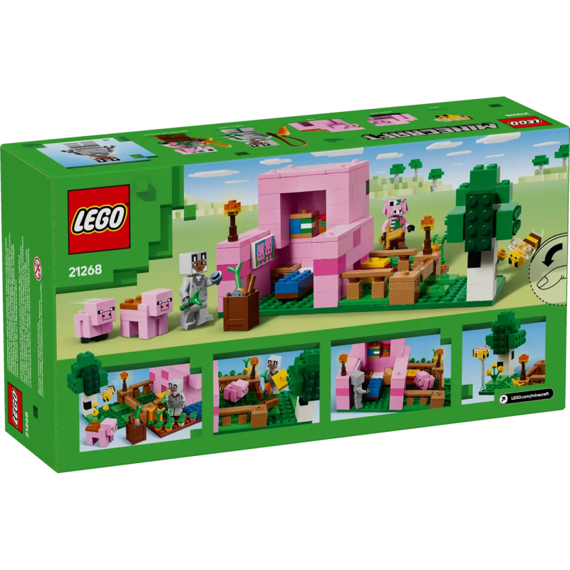 - LEGO® Minecraft® Babyschwein-Haus: Kinder bauen ein Haus, das wie ein Ferkel geformt ist. Zu der Farm gehören ein Acker für den Anbau von Kartoffeln und Futterrüben sowie ein Tor, um das Babyschwein aufs Feld hinausführen zu können