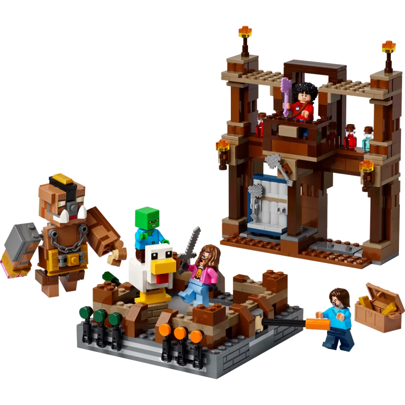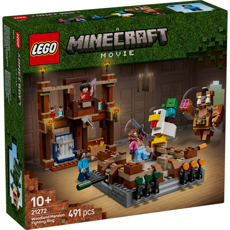 Das LEGO® Minecraft Bauset beinhaltet Spielzeugfiguren aus dem Film – Steve, Garrett, Henry, ein Zombiebaby, einen Hühnerjockey und einen beweglichen Oberborst – sowie jede Menge Ausrüstung und Tränke, um Actionszenen und eigene Abenteuer darzustellen. Zu dem Set gehört auch ein funktionierender Boxring mit Punktetafeln und Griffen, die Kinder an den Boxern befestigen können. Eine Außenmauer des Anwesens, eine herausnehmbare Truhe und ein Ausrüstungsständer vervollständigen das Modell. Digitalen Bauspaß bietet die LEGO Builder App, die Kinder 3D-Modellansichten vergrößern und drehen und ihren Baufortschritt verfolgen lässt.