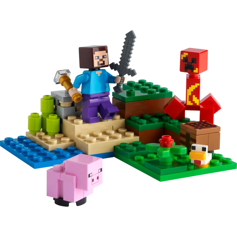 LEGO® Minecraft® Der Hinterhalt des Creeper™ beinhaltet viele Minecraft Charaktere, Zubehörelemente und Funktionen und ist ein tolles Geschenk für Kinder ab 7 Jahren.