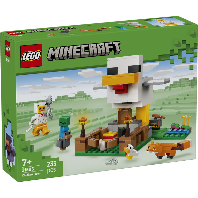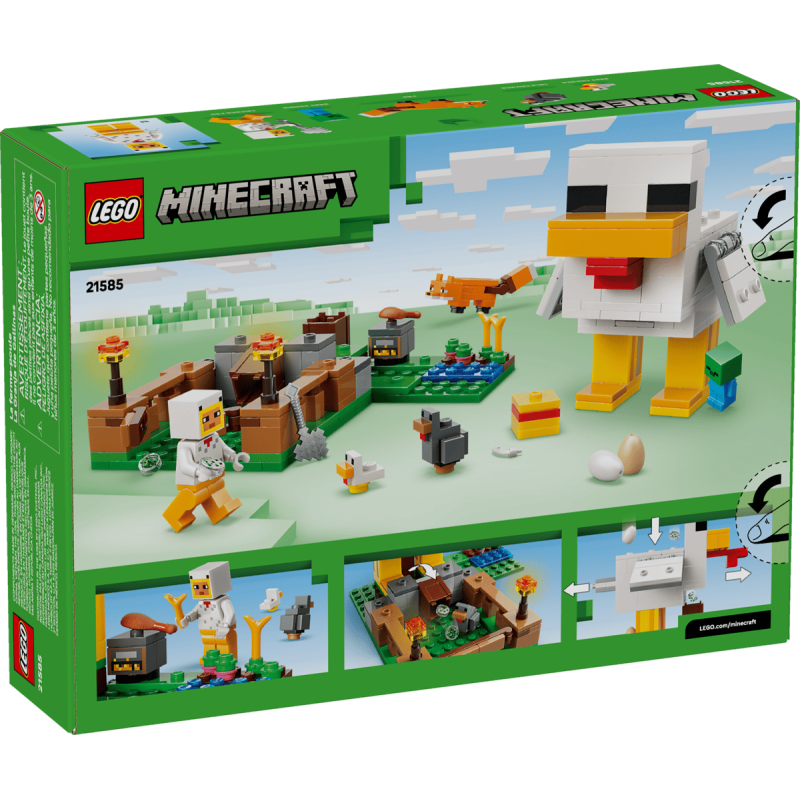 - FARM MIT MINECRAFT® CHARAKTEREN: Zur LEGO® Minecraft Hühnerfarm (21585) gehören die Minifigur Hühner-Fan, ein Zombiebaby (das gerne auf Hühnern reitet), ein Fuchs, ein Kaltes Hühnchen und ein Hühnerküken
