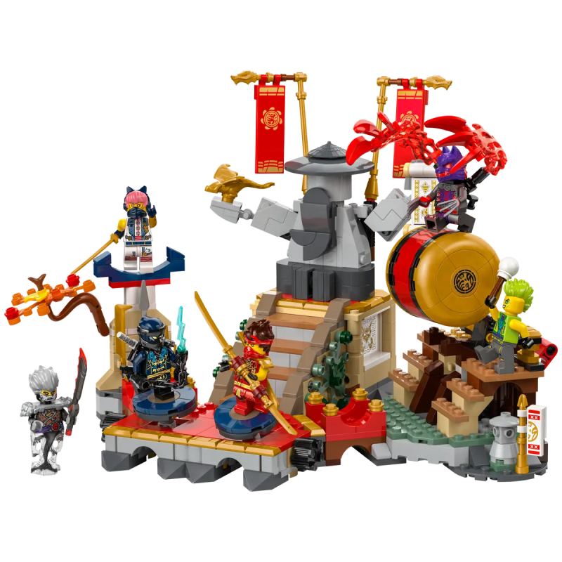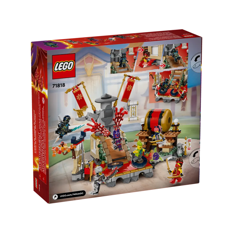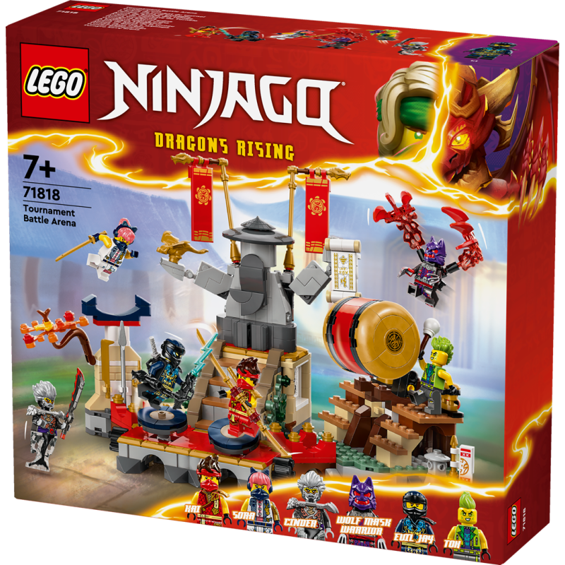 Diese detailreiche Turnier-Arena (71818) lässt Jungen und Mädchen ab 7 Jahren den dramatischen finalen Showdown aus der 2. Staffel der TV-Serie NINJAGO® Aufstieg der Drachen nachstellen. Dieses Ninja-Actionspielset enthält auch viele interaktive Funktionen für viele Stunden spannendes Spielvergnügen. Und nach dem Spielen zieht das spektakuläre Modell im Regal oder auf dem Nachttisch alle Blicke auf sich.