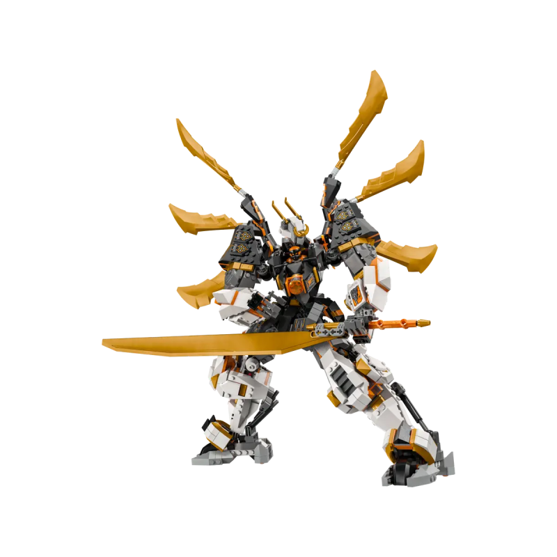 Neben dem Spielzeug-Mech beinhaltet das Set auch 1 NINJAGO Minifigur: Mech-Cole trägt 2 Katanas. In das Cockpit unter dem Kopf des Mechs können Ninja-Fans Mech-Cole hineinstecken, um die beiden in packende Duelle zu schicken. Und nach dem Spielen kann man den coolen Titandrachen-Mech ausstellen.