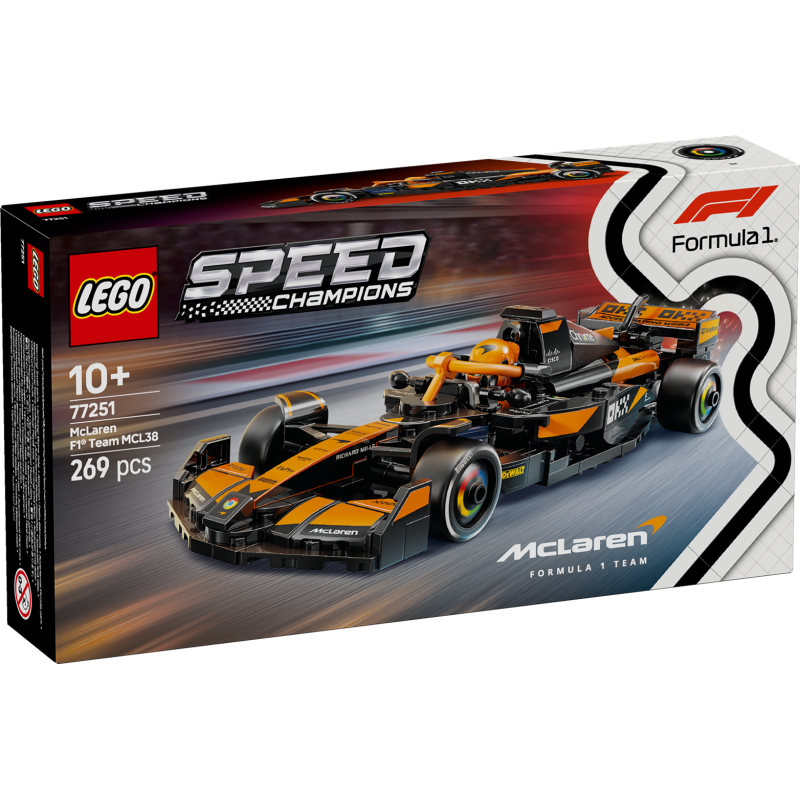 Das LEGO® Speed Champions McLaren F1® Team MCL38 Rennauto (77251) lässt Jungen und Mädchen die Faszination echter Formel 1® Rennen hautnah miterleben. Kinder und erwachsene Modellautofans können das Modell eines F1-Rennwagens bauen, der die gleichen Designdetails hat wie der echte Bolide, der in der Formel-1-Saison 2024 an den Start ging.