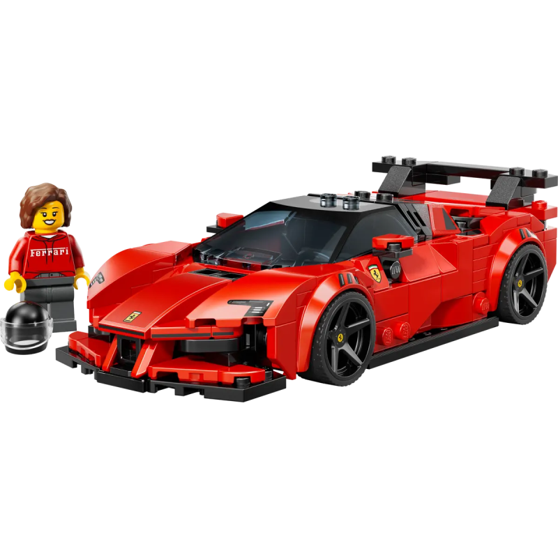 Kinder ab 9 Jahren können den stylishen LEGO® Speed Champions Ferrari SF90 XX Stradale Sportwagen (77254) bauen, ausstellen und für spannende Rennen benutzen. Das Modell des Ferrari-Boliden besitzt viele Designdetails des leistungsstärksten Ferrari-Sportwagens mit Strassenzulassung. Das Ferrari-Spielzeugauto hat das Cockpit vorne, einen Heckflügel, hohe Auspuffrohre und Felgen mit dem Ferrari-Schild. Neben dem Auto gehört auch eine Rennfahrer-Minifigur im Ferrari-Outfit und mit Helm zu dem Bauset. Kinder können die Minifigur auf den einzigen Sitz im Cockpit setzen und das Modell ausstellen, um allen ihre Begeisterung für die italienische Automarke zu zeigen. LEGO Speed Champions Bausets sind eine tolle Geschenkidee, denn sie lassen Kinderverschiedenste legendäre Fahrzeuge nachbilden. Die LEGO Builder App mit verständlichen digitalen Bauanleitungen lässt Kinder selbstbewusst bauen, ein 3D-Modell vergrößern und drehen und verfolgen, wie weit sie mit ihrem Modell schon sind Das Set besteh t aus 339 Teilen.