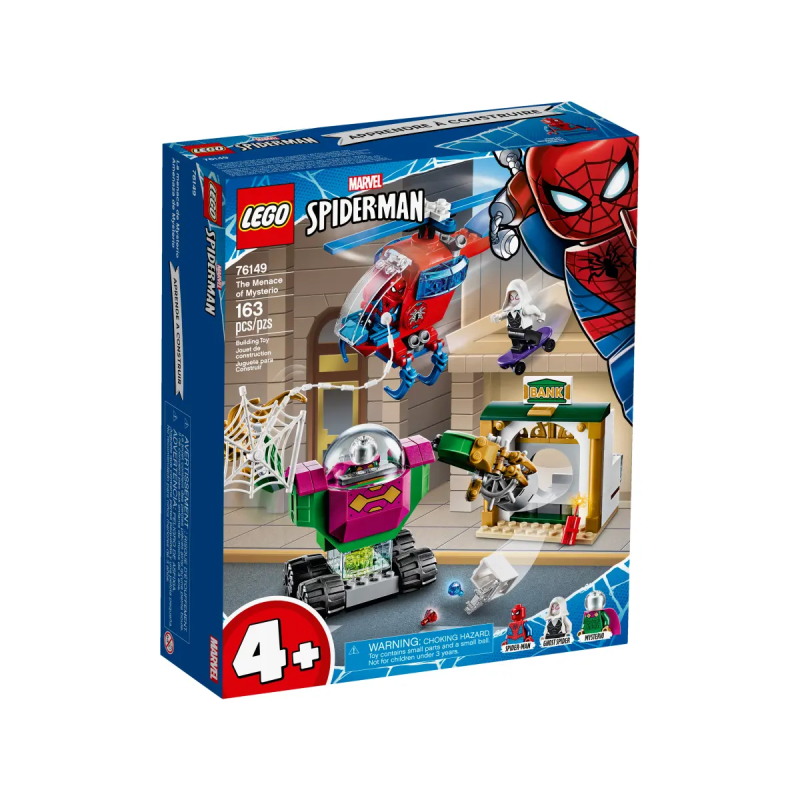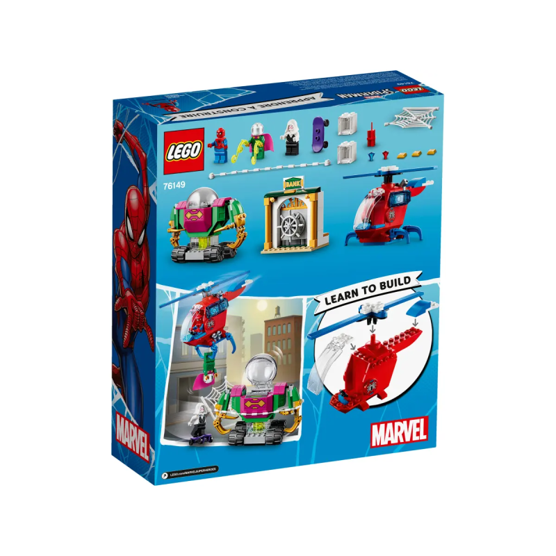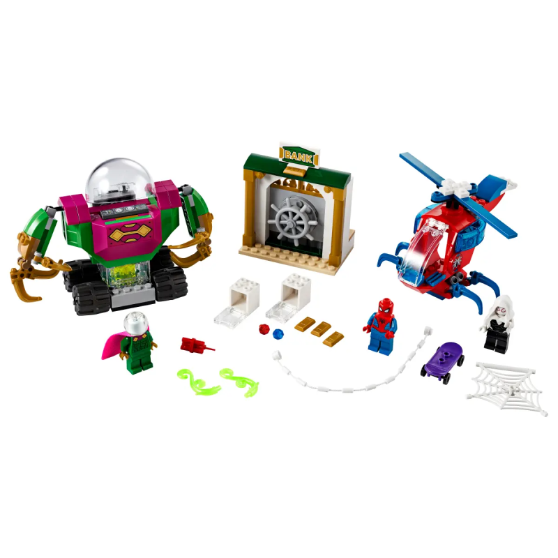 - Dieses coole Action-Spielzeug enthält drei Minifiguren: Spider-Man, Ghost Spider und Mysterio. Ebenfalls enthalten sind Spider-Mans Hubschrauber, Mysterios Mech und eine Bank mit Tresorraum!