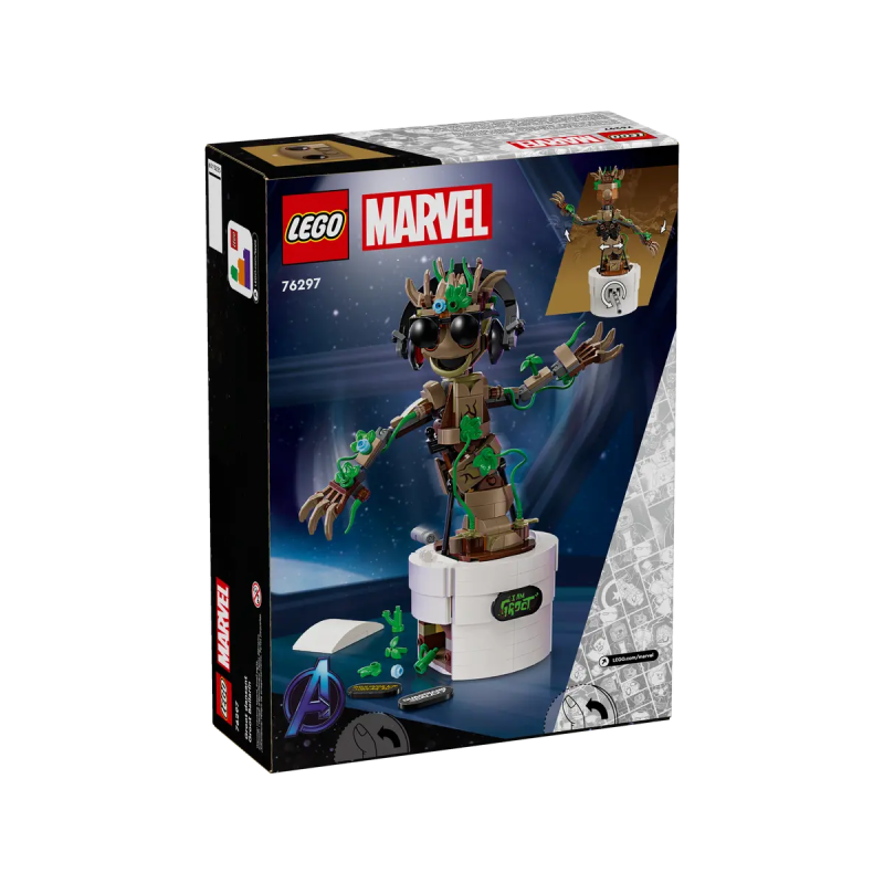 LEGO® Marvel Tanzender Groot (76297) ist ein Guardians of the Galaxy Bauspielzeug mit interaktiver Tanzfunktion. Das Set ist ein tolles Geschenk für Kinder ab 10 Jahren, die den Marvel Charakter Groot, Superhelden und LEGO Bauspielzeuge lieben.