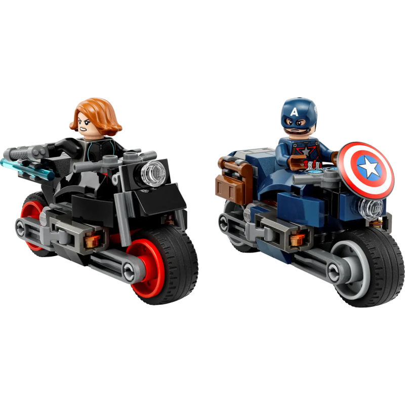 - Superhelden auf Motorrädern: Das Spielset beinhaltet die Minifiguren Captain America und Black Widow mit dem vertrauten Schild und dem berühmten Schlagstock sowie 2 Motorräder zum Zusammenbauen