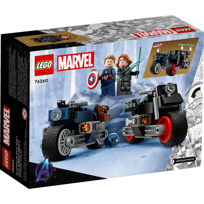 LEGO® Marvel Black Widows & Captain Americas Motorräder (76260) ist genau das richtige Set, um legendäre Actionszenen aus dem Film zum Leben zu erwecken. Das Set basiert auf einer Szene aus Avengers: Age of Ultron aus den Marvel Studios. Kinder ab 6 Jahren können die beiden Superhelden auf ihren Motorrädern in viele fantasievolle Abenteuer schicken.