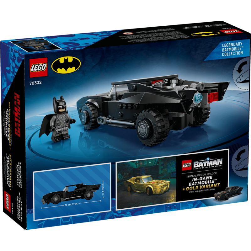 - DIE MINIFIGUR BATMAN™: Beinhaltet eine LEGO®Minifigur des Superhelden mit Stoffumhang sowie eine goldene Erinnerungsmünze, die unter der abnehmbaren Motorhaube des Batmobils eingebaut ist