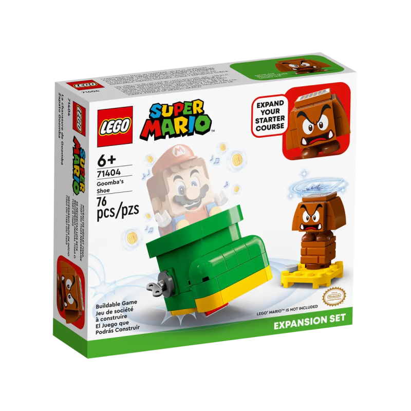 Freu dich auf coole LEGO® Super Mario™ Abenteuer mit dem Erweiterungsset „Gumbas Schuh“ (71404) für Fans ab 6 Jahren. Das Set beinhaltet Gumbas Schuh aus LEGO Steinen sowie die LEGO Spielzeugfigur Gumba für die gebauten Level. Hilf LEGO® Mario™, LEGO® Luigi™ oder LEGO® Peach™ (diese 3 Figuren sind nicht enthalten), sich den Schuh zu schnappen, darin herumzuhüpfen und Saltos zu machen, um digitale Münzen zu gewinnen. (Hinweis: Für interaktive Spielabenteuer wird eines der Startersets – 71360, 71387 oder 71403 – benötigt.)