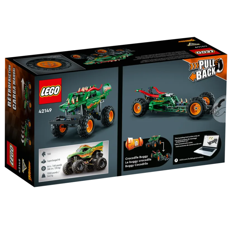 - Monstertruck zum Verschenken: Dein Kind kann den LEGO® Technic Monster Jam™ Dragon™ (42149) bauen und in spannende Rennen schicken. Der Rückziehmotor dieses 2-in-1-Modells wird dein Kind viele Stunden fasziniert spielen lassen